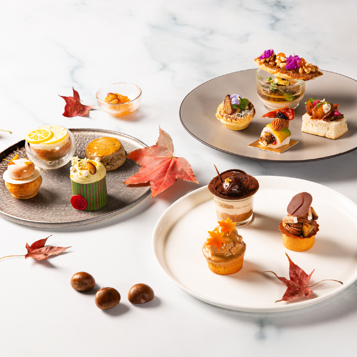 秋季限定優雅「絢栗多彩」下午茶,精緻甜點交織栗子、開心果與胡桃的濃郁香氣,融合楓糖、柑橘等多重秋日風味,鹹點從栗子起司蛋塔、伊比利火腿酪梨捲,到功夫鴨脆片入饌,七款細緻甜點與四款創意鹹點,層層驚喜。在秋色斑斕、陽光和煦的 Lobby Lounge,細細品味專屬秋日的悠然時光。