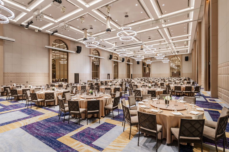 懸掛於廳內的三層環狀水晶吊燈,選用施華洛世奇水晶與大量金屬、玻璃材質,為此挑高寬敞的場域創造出豐富層次感。全區採用頂級愛爾蘭知名品牌Britton地毯、頂級音響設備,無縫的垂直音場覆蓋,打造宛如演唱會的極致聲光體驗。全新升級媲美國際級展演場館規格LED大螢幕,舞台設計彈性最大化。採用P2.5高畫質顯示間距,色彩准確、高刷新率。打造全方位視野、沉浸式視覺體驗。